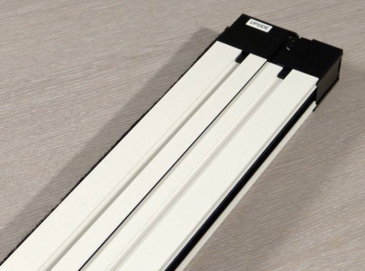 Schuif de eindkapjes op de uiteinden van de bovengeleider.